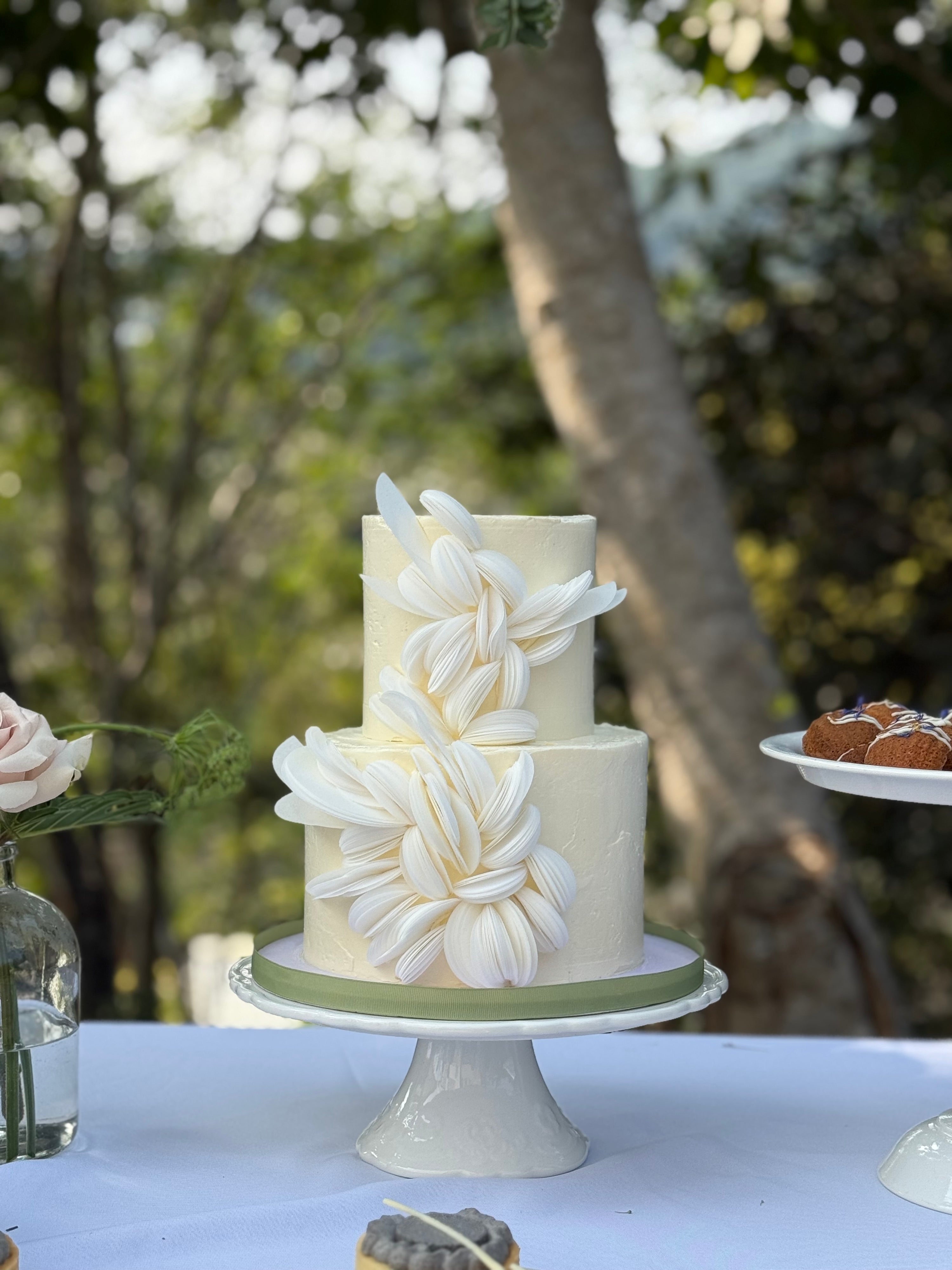 The trending wafer paper arrangement gives your wedding cake sophisticated and stylish design